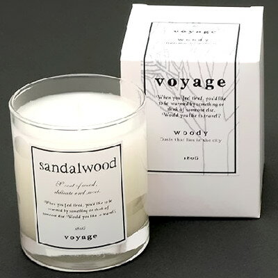 【2個で送料無料!コンビニ代引手数料無料!】【アロマキャンドル ヴォヤージュ サンダルウッド voyage sandalwood】上品かつ個性的な香りで「心の旅」をイメージしている『voyage』シリーズのアロマキャンドル!甘くエキゾチックでデリケートな白檀( びゃくだん)の香りです!インテリアのスパイスとしても最適です。化粧箱に入っておりますのでギフトとしてもおすすめです!【10P21Dec09...