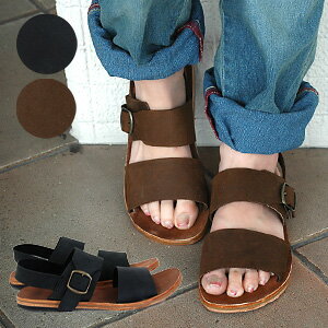 - ヴィンテージ風のぺたんこ本革甲ベルト付きコンフォートレディースサンダルウッド調のソール部分もすべてリアルレザー製!履くだけでセンスの感じられるヴィンテージ風のぺたんこ本革甲ベルト付きコンフォートレディースサンダル【送料無料】◆アンティークオールレザーサンダル